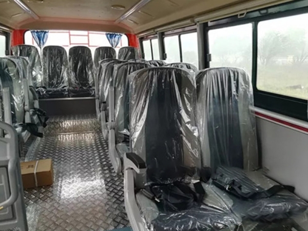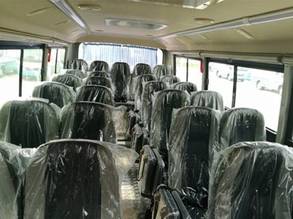 2、简化内饰带窗帘,带换气安全天窗、前风挡手动遮阳帘、中门后乘客座椅前设置防护栏,地板为铝制花纹板材,驾驶员座椅高档减震座椅(可前后位移、上下高度、水平角度、靠背角度均可调节),乘客座椅为仿皮普通座椅(固定不可调节),可调式扶手。