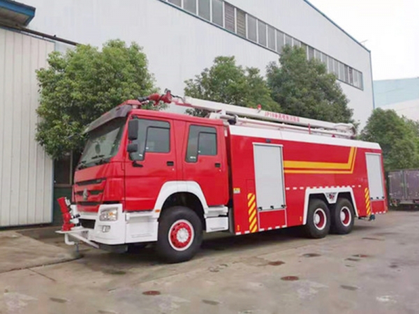 车型概述 | 重汽豪沃举高喷射消防车是我厂采用重汽原装底盘ZZ5347V4647E1基础上改装而成,整车结构紧凑;专用部分由操纵台、供水系统、电气系统、液压系统、折叠伸缩臂、电动遥控消防炮等组成,主要用于高层建筑以及石油化工装置、油罐、仓库等高大建筑物的火灾扑救,消防队员可通过电动遥控消防炮在高空中从多个角度灵活地喷雾、喷水或者喷射泡沫进行扑救一般性火灾,是理想的消防装备。。 | ||||