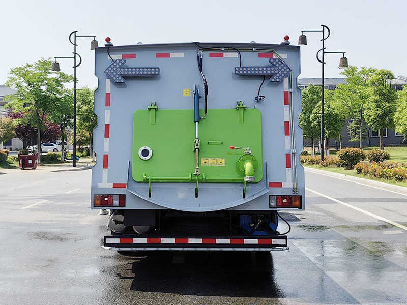 上装配置:副发动机是康明斯140马力,箱体材质为304不锈钢,垃圾箱容积4.5立方,清水箱容积5立方,清扫宽度:2800-3200mm,保洁作业速度15-20km/h, 最大清扫能力48000㎡/h , 德国进口高压泵(前冲/侧喷/中喷/后喷雾/冲洗水枪/垃圾箱自洁装置),水过滤器,管路,不锈钢喷架,高压喷嘴,清吸降尘左右前扫盘,吸尘吸盘,带2个中置扫盘,LPC电子控制,一键操作,尾部厢体外观为方形豪华型,日本三洋马达;万向高压路沿清洗喷头,威龙低压泵(前冲);不锈钢管高压管路;德国控制器, PLC一键控制;尾部LED箭头灯;副机转速表、副机水温表、机油温度报警装置、各种操作控制开关;倒车及洗扫状态室内监视器。18m高压冲洗卷盘。清洗压力10MPa;吸入颗粒度:≥100mm。