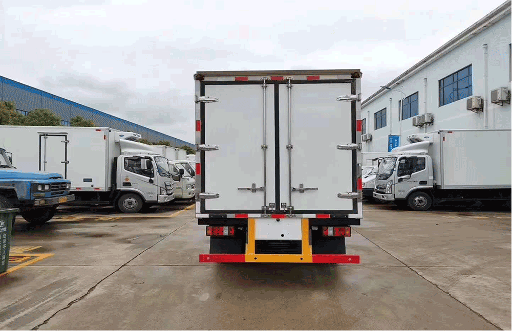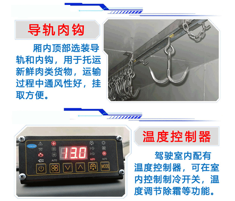 | 其他 | 车厢顶部封闭不可开启,防护材料:Q235A碳钢,连接方式:左右侧面防护以及后部防护采用焊接连接,后防护断面尺寸(mm):150×50,后部防护离地高度(mm):350;ABS系统型号:APG3550500A,ABS系统生产厂家:浙江亚太机电股份有限公司,选装功率相当的其它型号制冷机组。 | ||