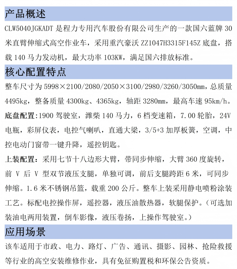 CLW5040JGKADT型高空作业车