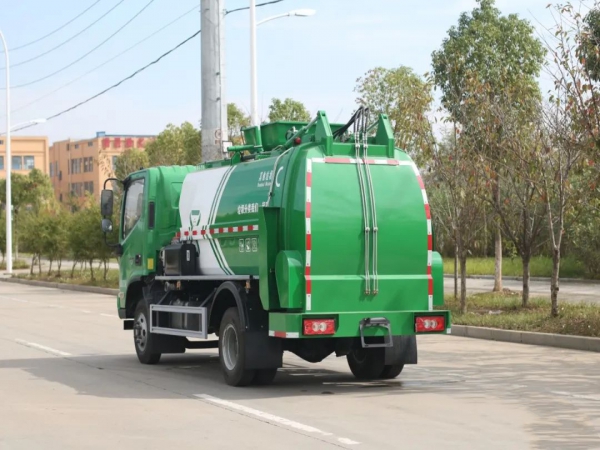餐厨垃圾车,又称:泔水车,可根据客户对垃圾装载量的不同要求选用类型不同的底盘,可装载2-10吨垃圾的餐厨泔水车,承载餐厨泔水容积为圆形或方形罐体,有效容积达到90%,罐体内分上、下两层,下层为固液分离后污水收集箱,污水箱两头高,中间低,低端设有出水口,以保证污水排放干净。