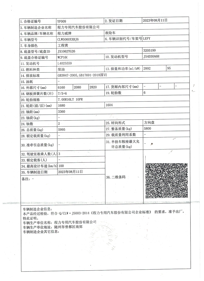 CLW5060XXHJ6型救险车