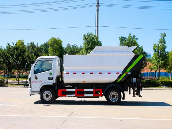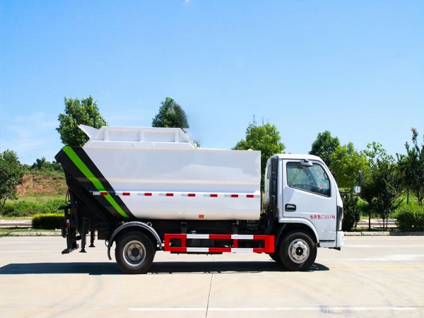 该车型是我公司根据环卫市场需求开发的一种新型垃圾车,选用东风公司生产的二类汽车底盘。由垃圾箱、翻桶机构、举升机构、刮板及滑板压缩机构、液压系统和电气系统等部件组成。具有外形美观、驾驶舒适、操纵方便、机动灵活、可靠性高、运营成本低、上料效率高等特点。适用于城市、乡镇的垃圾收集转运,箱体采用船型斗结构,彻底解决了垃圾运输过程中的污水滴漏等问题。