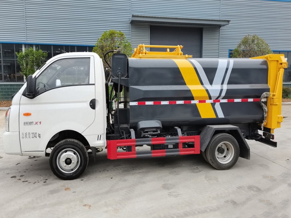 侧装式压缩垃圾车属于自装卸式垃圾车的一种,采用侧提桶上料方式进行生活垃圾收集,采用推板推挤或自卸式进行卸料。主要结构:汽车底盘、垃圾厢体、底架、侧提桶机构、后门总成、推板总成、液压系统和电控系统。液压及电控系统由油泵、油缸、油箱、电液**阀、PLC和**开关等组成。同时本车自重轻,箱体为圆弧形,容积大,同等车型中装载量**,并且美观大方。