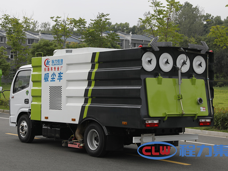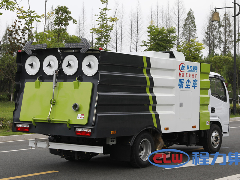 东风小多利卡5方吸尘车专用配置:尘箱:4立方米,水箱:1立方米;中置吸盘、江铃五十铃副发动机、施耐德控制开关、海普瑞斯电磁阀组、无级变速自动离合器、免维护离心式风机、高精度垃圾箱过滤系统(最高可达0.5微米),不锈钢垃圾箱、进口脉冲阀、垃圾箱举升自卸、尾部LED箭头灯、车尾雾状喷水润湿功能、倒车影像、手动泵应急系统。